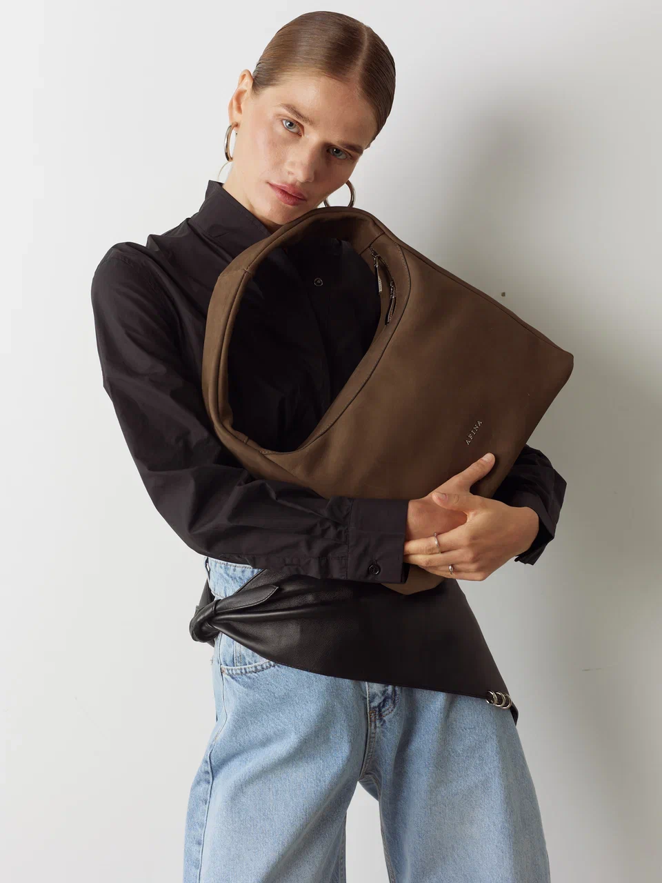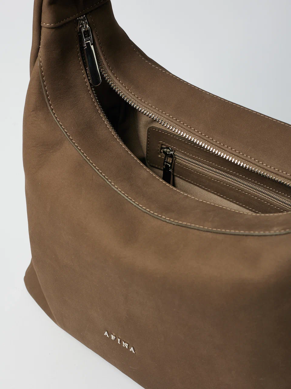 Плавность линий, тактильность и мягкость форм - это хобо AFINA №766. Широкая ручка и минимум декора, надежная застежка-молния и карман на задней стенке, функциональное внутреннее отделение и