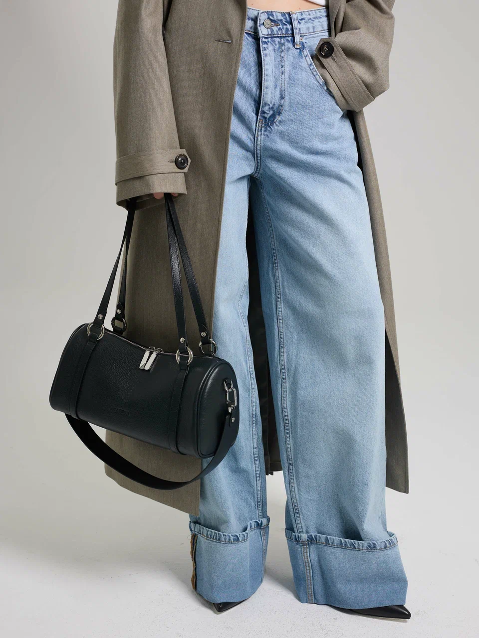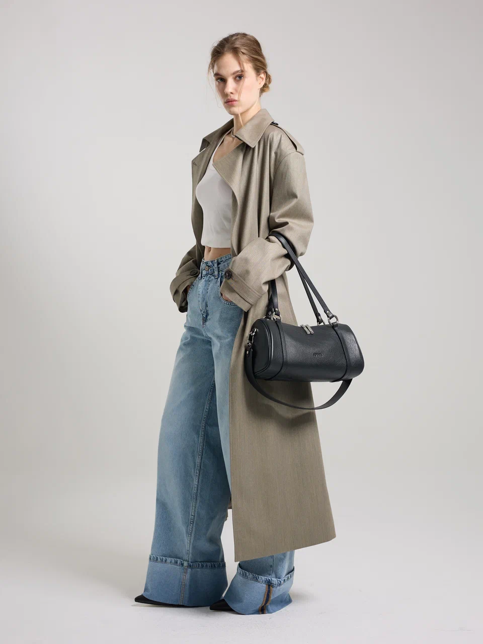 Модель AFINA №786 округлой архитектурной формы отсылает к ключевым трендам сезона и органично переносит подиумную эстетику в повседневный ритм мегаполиса. Благородная фактура натуральной кожи альчесофт добавляет образу глубину и тактильность, создавая выразительный контраст с глянцевой динамикой города.