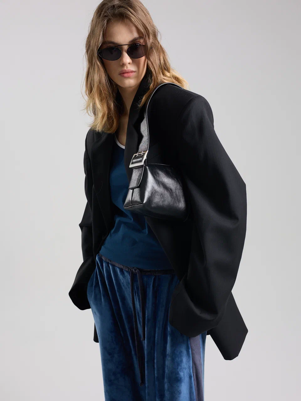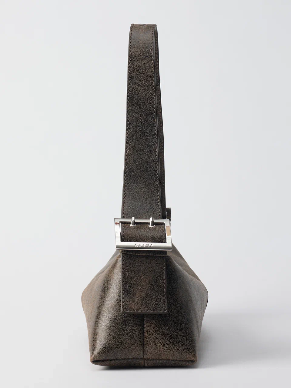 AFINA №787 — сумка с характером, которая сразу задает тон образу. Архитектурная форма и массивные пряжки на ручке создают выразительный акцент, который притягивает взгляд и добавляет образу