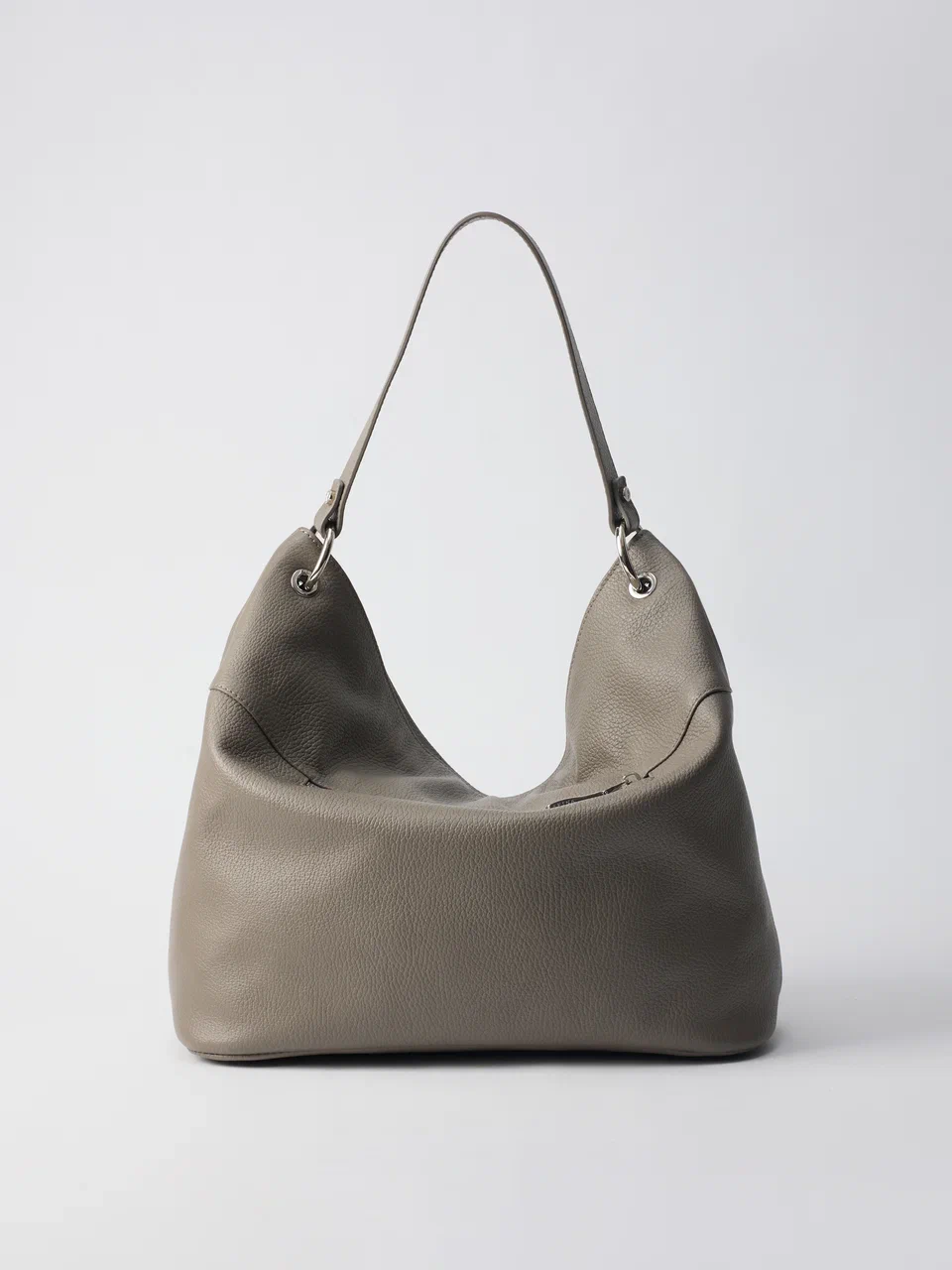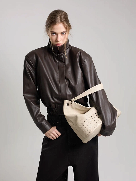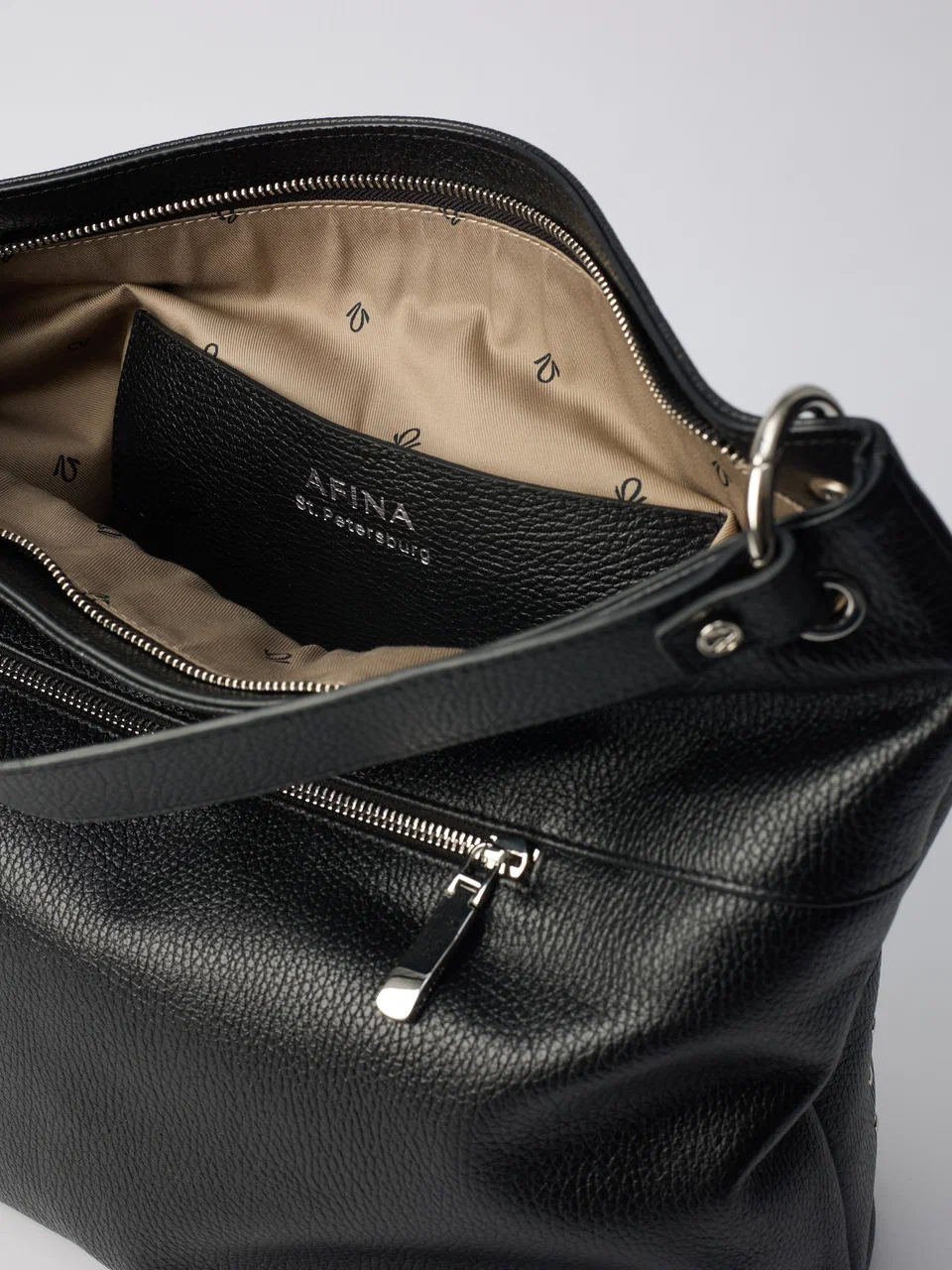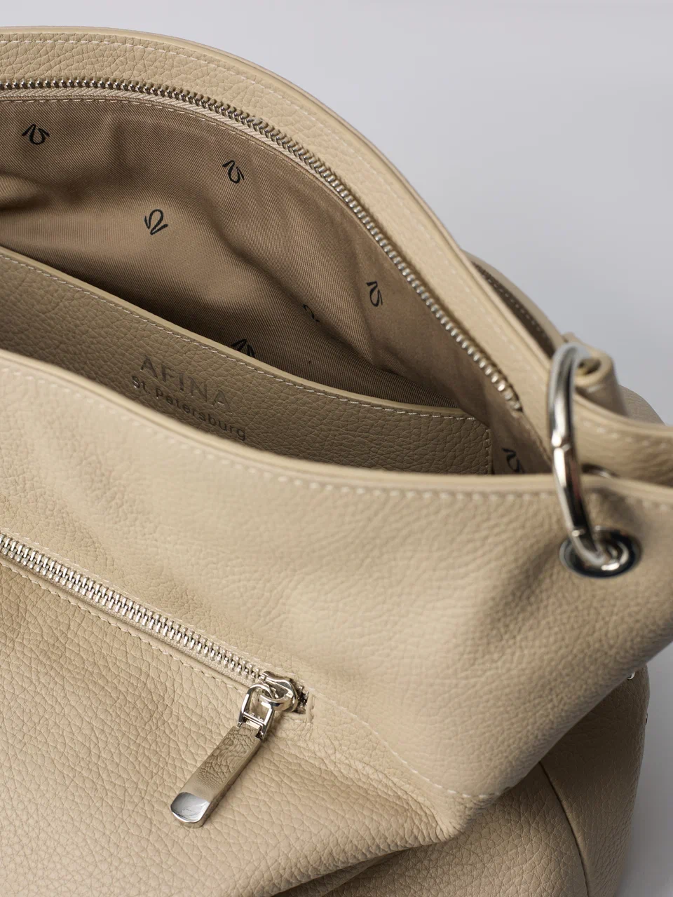 AFINA №790 — скульптурный минимализм в самом чистом виде. Мягкий каркас, одно вместительное отделение на надежной молнии и лаконичная ручка формируют собранный и современный силуэт. Дерзкий металлический акцент добавляет образу выразительность — точный штрих в ритме мегаполиса.