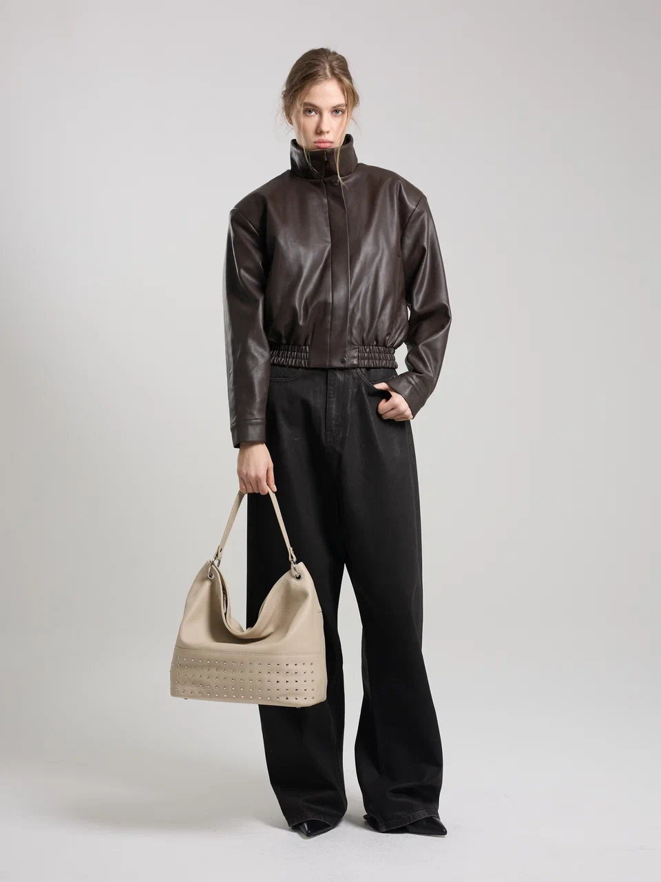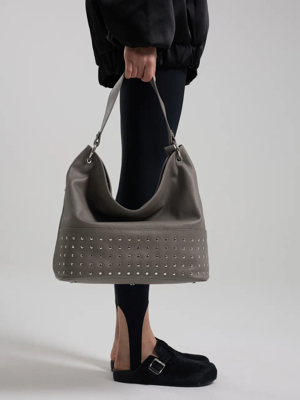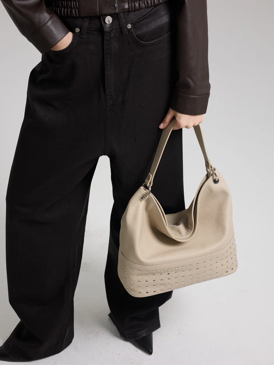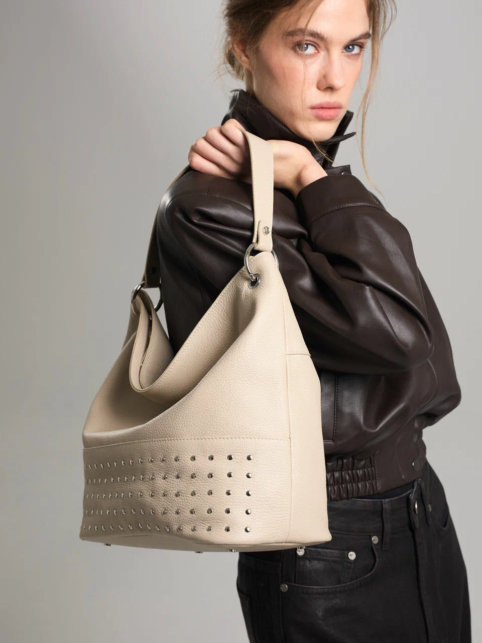 AFINA №790 — скульптурный минимализм в самом чистом виде. Мягкий каркас, одно вместительное отделение на надежной молнии и лаконичная ручка формируют собранный и современный силуэт. Дерзкий металлический акцент добавляет образу выразительность — точный штрих в ритме мегаполиса.