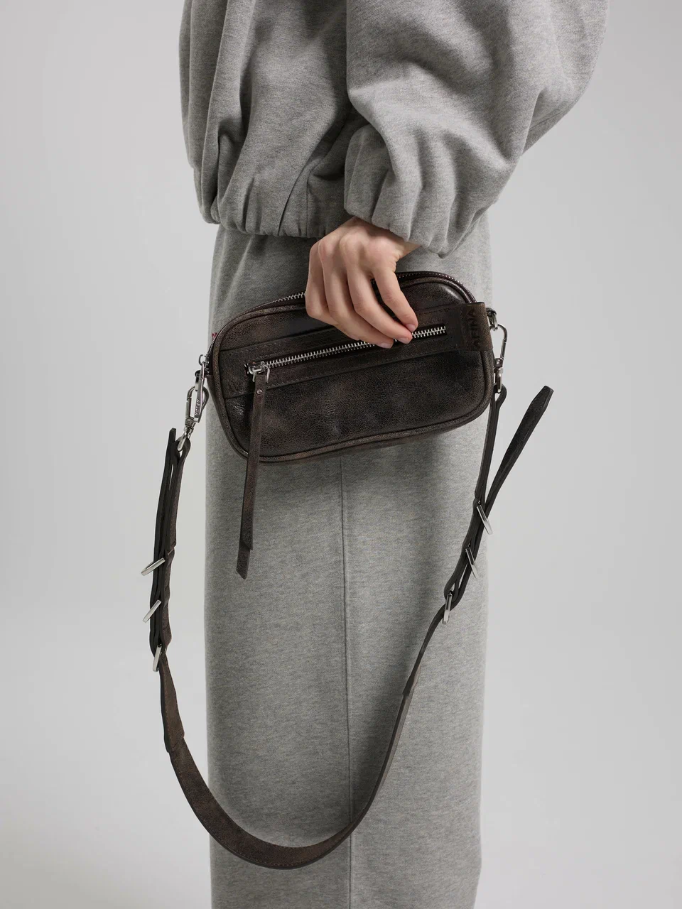 Надежная застежка-молния обеспечивает безопасность, а регулируемый ремень позволяет точно настроить длину под любой сценарий дня. Внутренний кожаный карман помогает удобно организовать мелочи и карты. AFINA №794 оставляет руки свободными и легко адаптируется к разным ритмам — от активных будней до вечерних прогулок. Компактная, практичная и актуальная — сумка для жизни в движении.